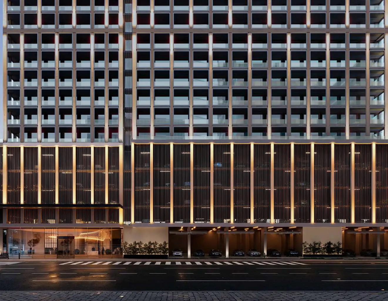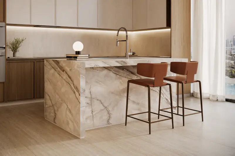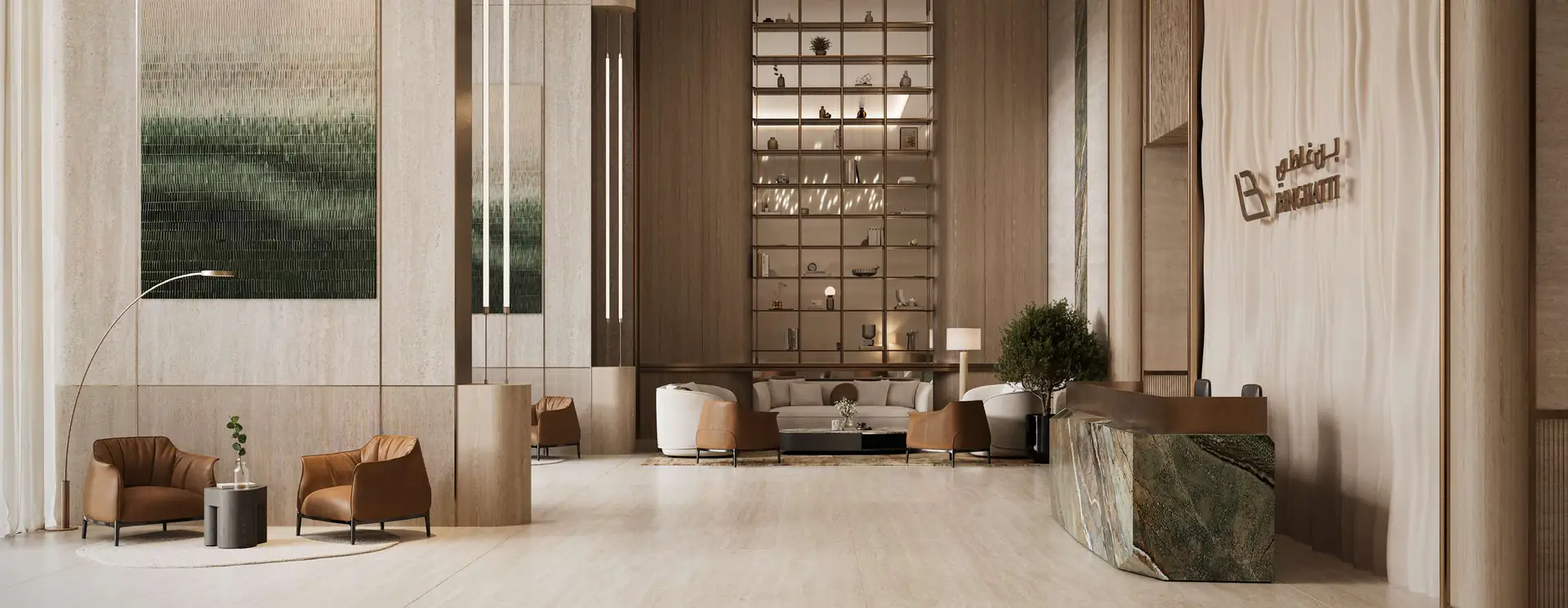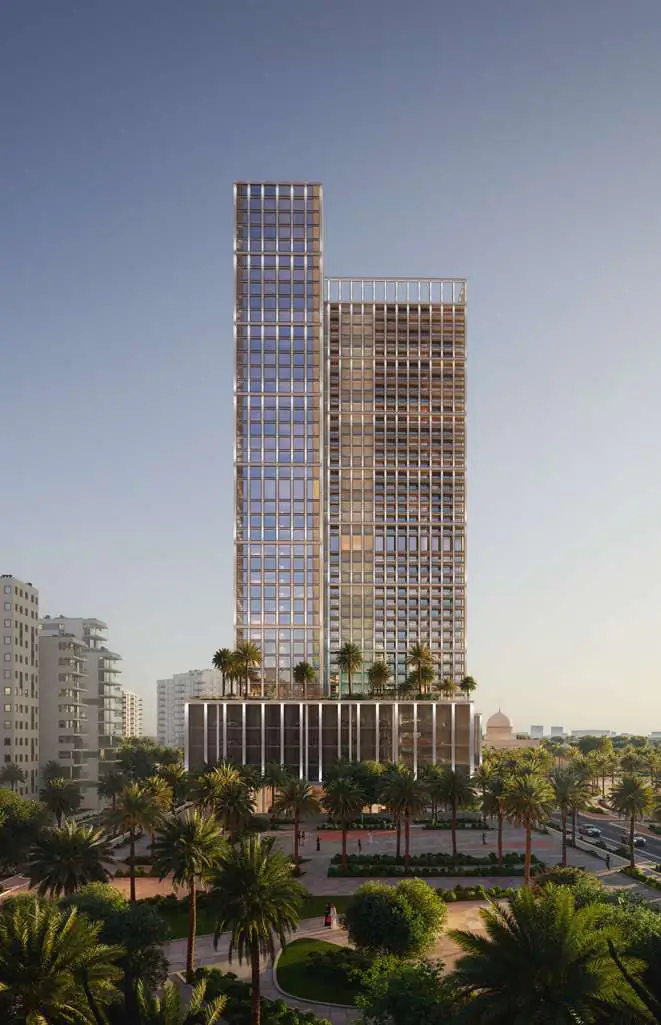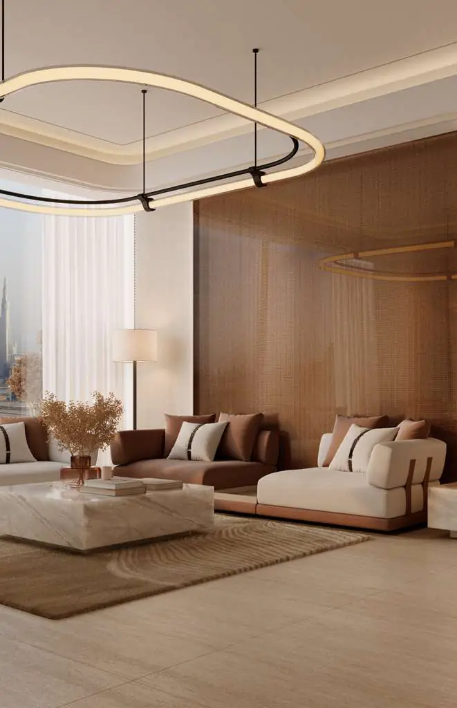 The development’s design reflects Binghatti’s signature illuminated façade, embodying timeless sophistication and modern elegance. Each residence boasts 3.5-metre floor-to-ceiling heights, high-efficiency layouts, and smart home features, with kitchens fully equipped with appliances. Interiors are crafted from a luxurious palette of travertine stone, walnut wood, accent marble, brass, and metallic glass, creating a warm, refined living experience.