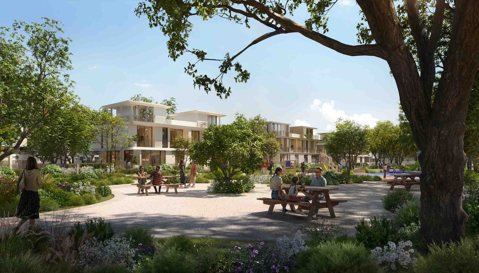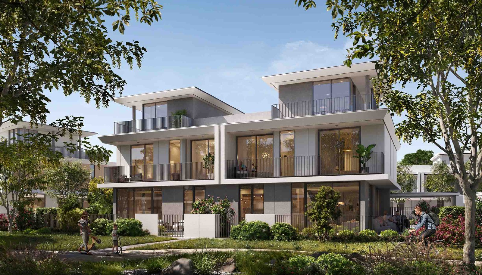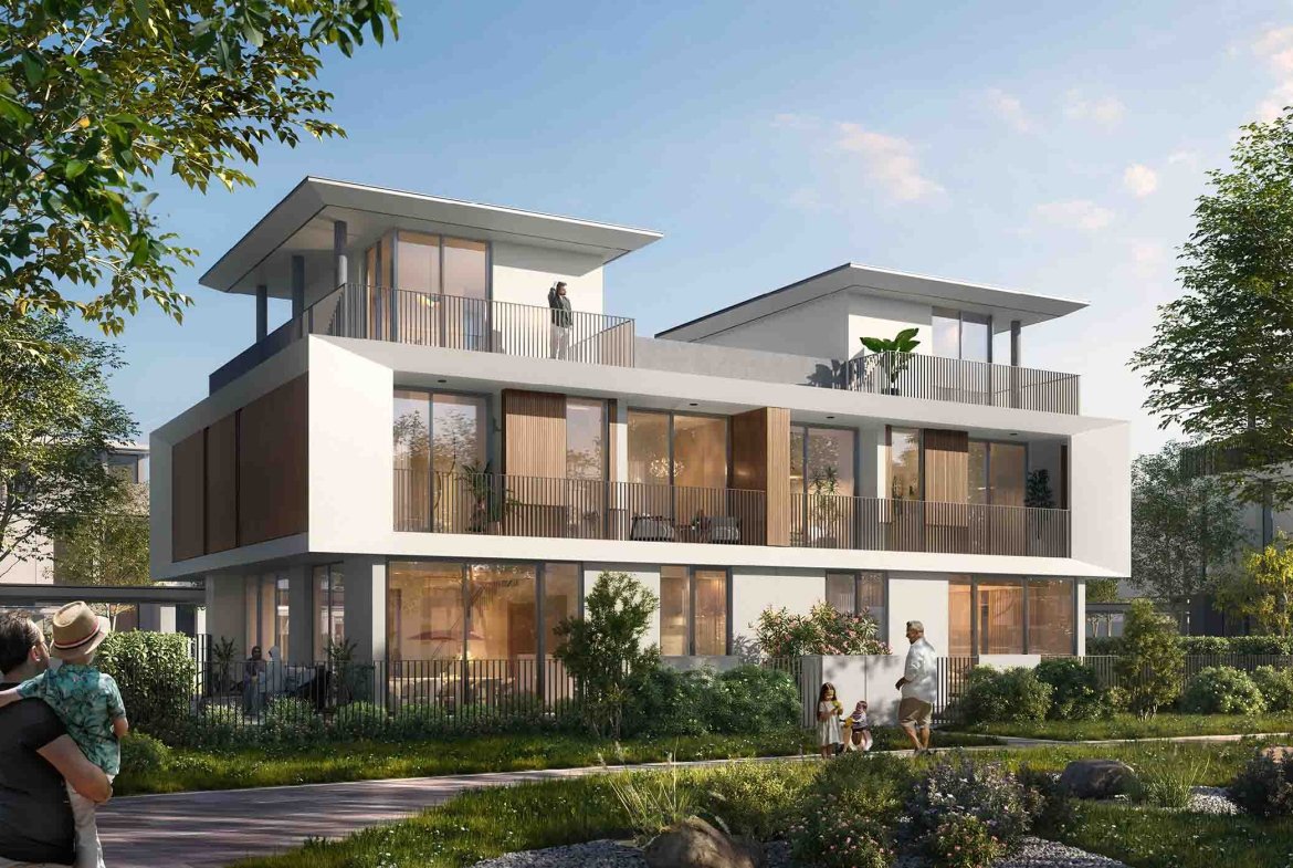 This exclusive enclave features 378 four-bedroom villas, each crafted with clean silhouettes, earthy palettes, and natural textures that reflect the surrounding landscape. With BUAs ranging from 3,688 to 3,714 sq. ft., these G + 2 floor residences offer generous layouts, expansive terraces, and an abundance of natural light. Priced from AED 4.78 million, Rivera presents a refined, family-friendly living experience with direct access to flower farms, orchard groves, jogging trails, and meandering rivers.